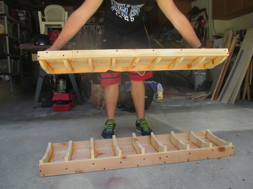 be bit shorter than 2 feet and we had to make the distance of the bricks shorter to able to test it. It was able to carry water more than its weight and had pretty nice support in the middle.